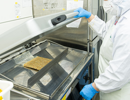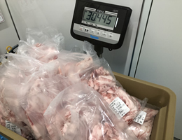 食材に付着している有害微生物はないか等を確認し専用コンテナに移します。