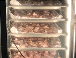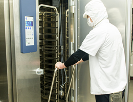 また自社ならではのレシピに準じて加熱調理し、調理後すぐに急速冷却をかけ、菌の繁殖しやすい30℃~65℃の温度帯を一気に通過せさ菌の繁殖を最低限に抑えます。