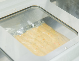十分に冷却された商品はすぐさま真空包装し、食材の旨みをギュッと閉じ込め、空気に触れない状態を維持し味の変化などを防止し、作りたての味を維持させます。
