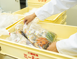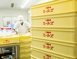 大型回転釜等専用の調理設備を使い、中心部まで十分に加熱し、味つけを行います。特にこの行程はミールズの味の魅力の一つです。